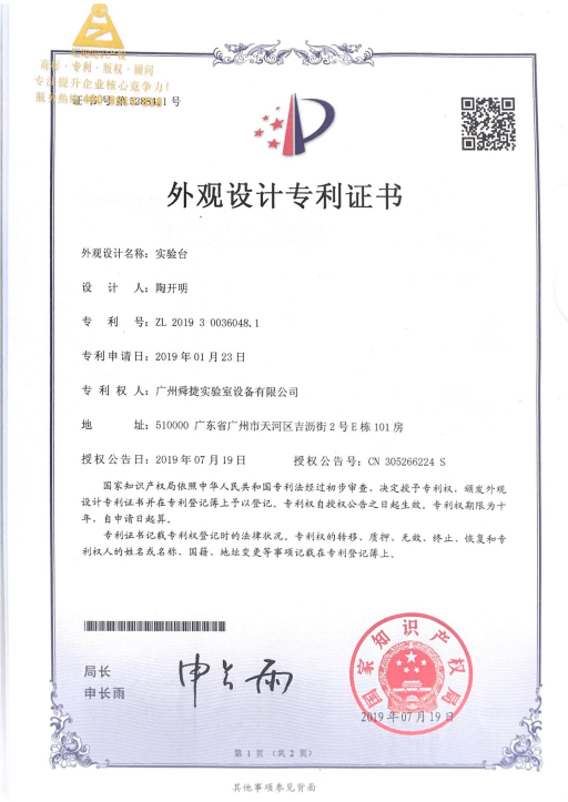 廣州舜捷實驗室設(shè)備有限公司擁有自主品牌及多項專利證書,包括:實驗臺、中央臺、通風柜、天平臺、氣瓶柜等